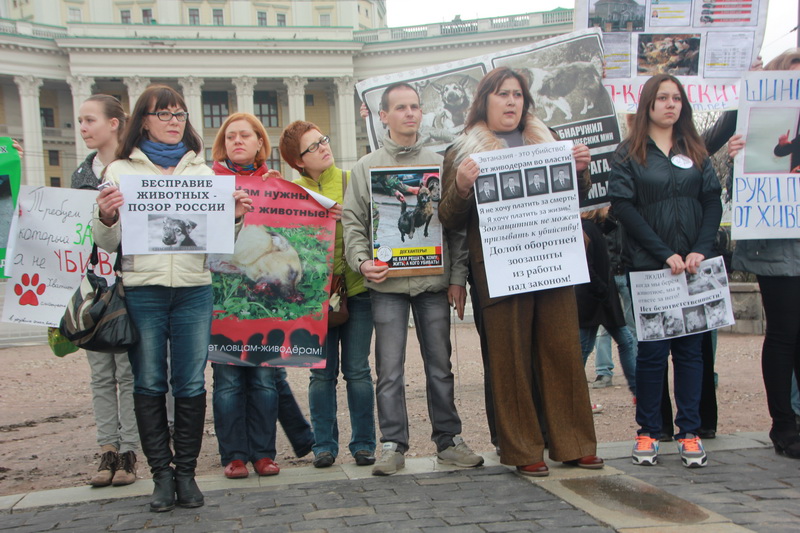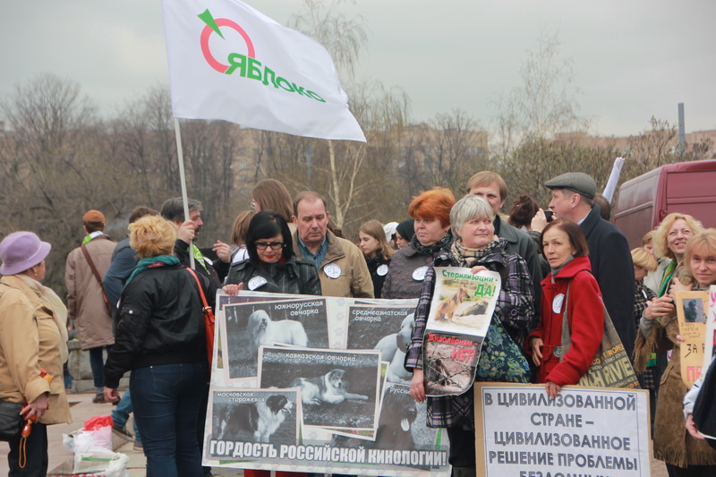 Более 500 человек собралось на митинг против жестокого обращения с животными, который прошел сегодня на Суворовской площади в Москве. Участники акции протестовали против закона «Об ответственном обращении с животными», под руководством депутата Шингаркина превратившегося из зоозащитного в живодерский. Акция прошла при поддержке партии «ЯБЛОКО».