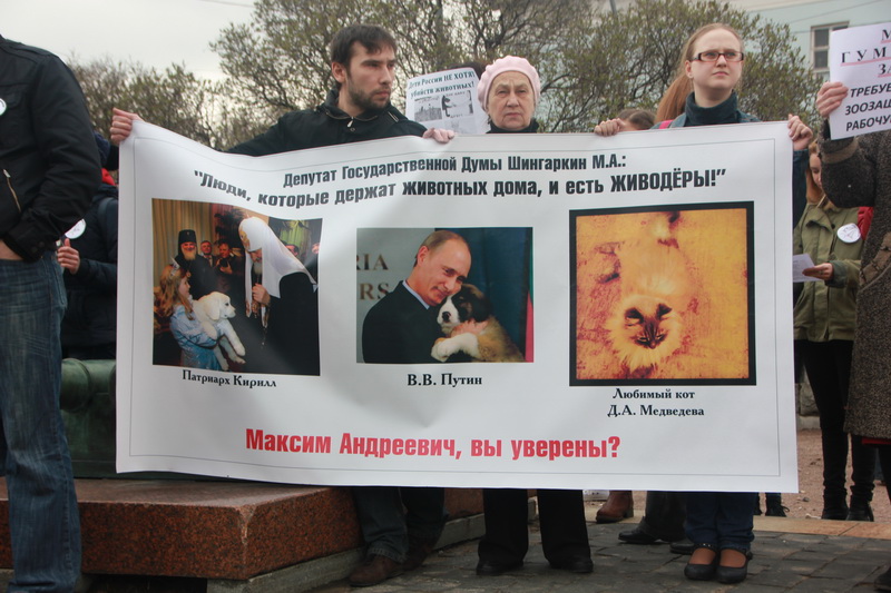Большинство выступлений было посвящено закону «Об ответственном обращении с животными». В первом чтении этот документ был принят Госдумой 5 созыва. В Думе 6 созыва рабочую группу по доработке проекта возглавил депутат от ЛДПР Максим Шингаркин. Под его руководством документ, по словам выступавших на митинге, превратился в живодерский.