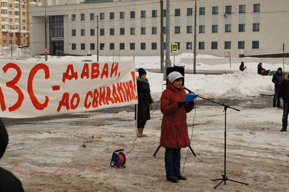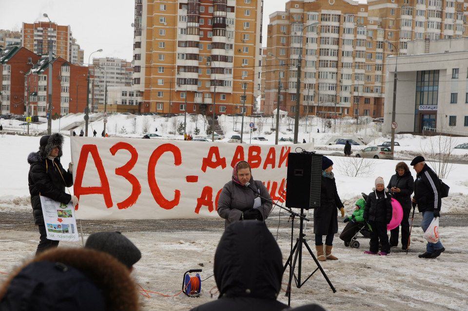 Анна рассказала о предыстории вопроса. Летом 2011 года на публичных слушаниях более тысячи жителей высказались категорически «против» АЗС. А весной 2012 года было принято решение построить на близлежащих участках детский сад на 400 мест и школу на 550 мест. Однако, в начале 2013 года в управу пришли документы по согласованию строительства АЗС. Жители собрали 4010 подписей, которые были направлены с протестом против АЗС мэру Москвы 15 февраля 2013 года. Анна рассказала об ответе на коллективный протест жителей, который пришел на днях, — по сути это было «отпиской», в которой перечислялись уже известные жителям факты и были даны какие-то смутные обещания, без всякой конкретики.