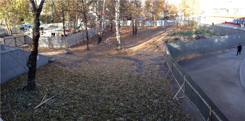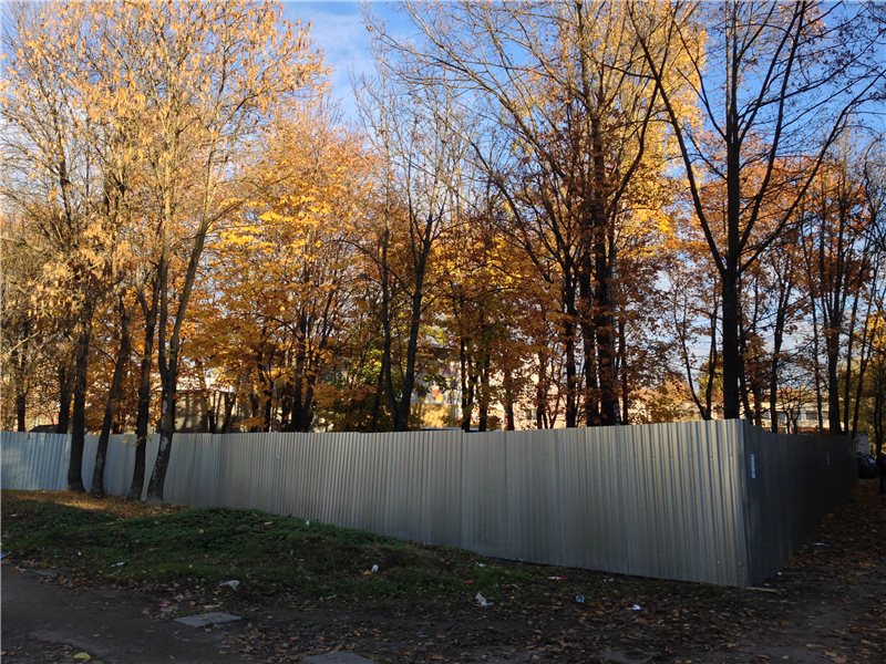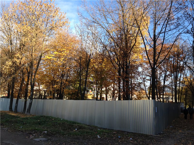 Часть сквера была вероломно уничтожена летом этого года под видом ликвидации аварийных деревьев (там были роскошные ивы, но жертвой пали не только они), теперь же появился забор, по очертаниям которого очевидно: сквер намерены уничтожить практически полностью. Это и стало вестью для народа – конец скверу.