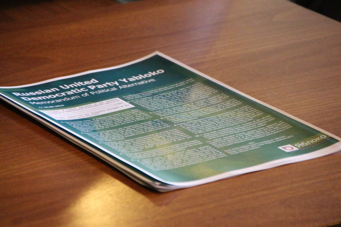 Галина Михалева рассказала об истории и работе партии, после чего состоялась дискуссия. Пресс-секретарь «ЯБЛОКА» Мария Епифанова представила работу пресс-службы, представители молодежного крыла и активисты партии ответили на многочисленные вопросы немецких гостей: об участии в выборах, кандидатах, политическом меморандуме, роли партии в российской политике, о политической деятельности активистов и их интересах.