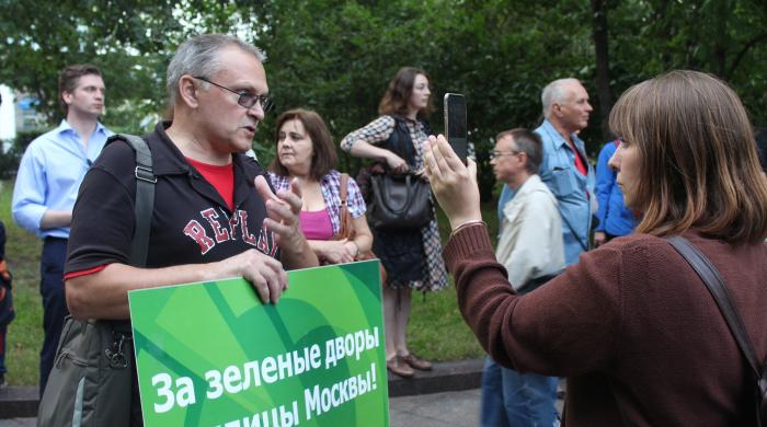 В среду, 6 июля, в Москве прошел митинг против вырубки и застройки парков, скверов и городских лесов и против незаконной раздачи городской земли под строительство. Инициаторами акции выступили Московское «ЯБЛОКО» и инициативные группы защитников природы.
