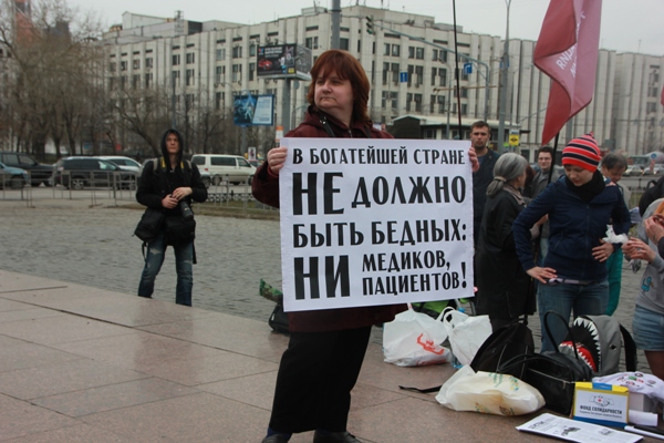 На сегодняшний день зарплата сотрудника следственного комитета более 100 тысяч рублей, зарплата врача в Удмуртии не превышает 15-17 тысяч рублей. При этом оплата ЖКХ и проезда в Ижевске сравнима с московскими ценами. Вопрос о том, почему сотрудник правоохранительный органов получает больше врача, от которого зачастую зависит жизнь, не раз звучал от участников акции.