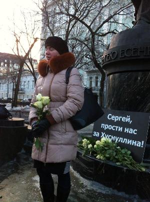 По окончании митинга его участники провели акцию покаяния у памятника Сергею Есенину — попросили прощение за то, что современное поколение не бережет его память. Возложили белые розы, оставили плакат «Сергей, прости нас за Хуснуллина» и прочитали стихотворения поэта.