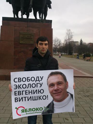 Во Владикавказе на площади Воссоединения члены партии «Яблоко»: председатель северо-осетинского отделения «Зеленая Россия» Ацамаз Хадиков и руководитель республиканского «Молодежного Яблока» Алан Аликов провели серию одиночных пикетов в поддержку Евгения Витишко.
