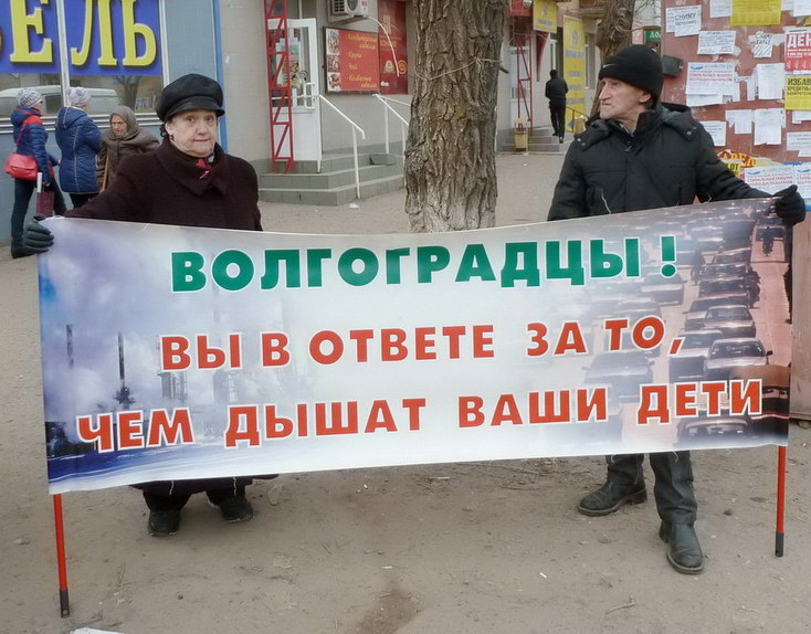 С целью привлечения внимания органов власти к проблеме загрязнения атмосферного воздуха в Волгограде, 10 декабря в Центральном и 12 декабря в Красноармейском районах города прошли информационные пикеты и сбор подписей под обращением к президенту РФ.