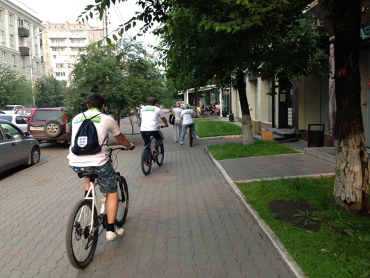 «Первоначально таким массовым велопробегом мы хотели проверить, насколько центр Красноярска удобен для передвижения на велосипеде, - вспоминает организатор акции, член бюро Красноярского регионального совета партии «ЯБЛОКО» Сергей Волков. – Хотя как человек, который ежедневно ездит на работу и с работы на велосипеде, я заранее предчувствовал ответ: нет, совсем не приспособлен».