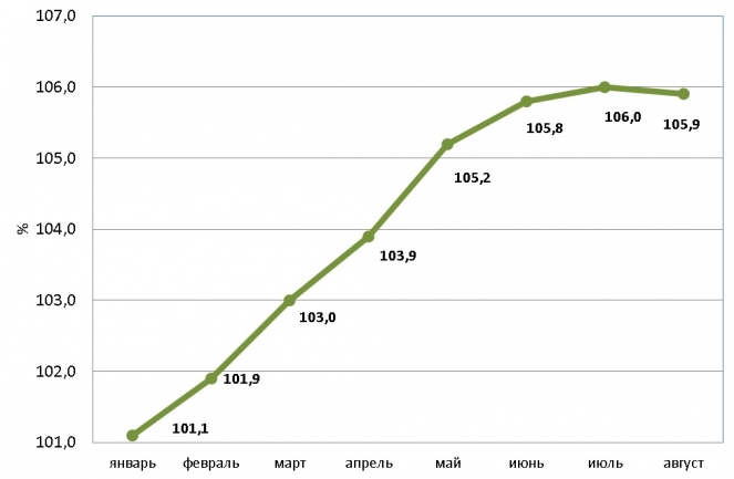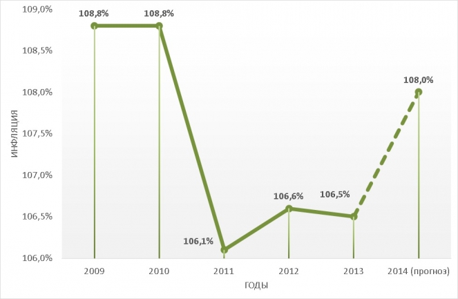 - индекс потребительских цен от 106% в 2015 г. до 105% к концу 2017 г. к декабрю предыдущего года.
