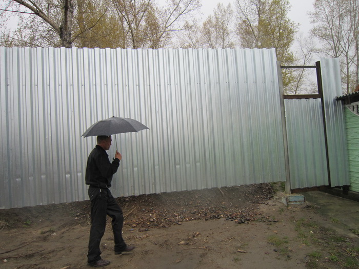 Осмотрев трехметровый забор, Сергей Митрохин отметил, что Вавулин нарушил законодательство: перегорожена улица, являющаяся территорией общего пользования, которая не может быть передана в собственность частному лицу, а так же нарушена ст. 6 Водного кодекса РФ, гарантирующая свободных проход граждан по 20-метровой береговой полосе.