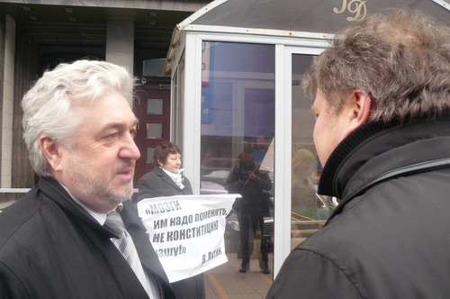 Пикет продолжался около часа. Некоторые депутаты, проходя мимо плакатов, останавливались, внимательно их читали и даже пытались оправдываться. «Мы не меняем Конституцию, а так, чуть-чуть ее корректируем», - сказал один из них.