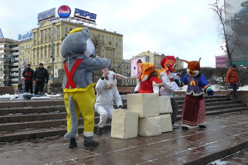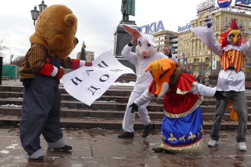 Открыло акцию театрализованное представление по мотивам народной сказки «Теремок». Предприниматели были аллегорически изображены животными, совместно снимающими помещение в аренду, и очень обрадованными новостью, что медведь – хозяин леса, разрешает им выкупить здание. Радужные планы зверей разрушает волк, который не только не продает им помещение, но и выгоняет их. Постановка, показанная зрителям, закончилась обнадеживающе: звери пожаловались медведю на волка, и он вернул им их «площадь».