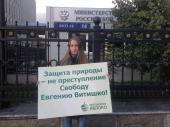 // Пресс-релиз,СегодняАктивисты Московского Молодежного ЯБЛОКА провели серию одиночных пикетов в поддержку эколога, члена партии ЯБЛОКО Евгения Витишко у здания ФСИН. Более 10 человек приняли участия в акции. «Часть вины за то, что невиновный человек отбывает срок в колонии лежит на ФСИН. Подробнее