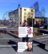 // Пресс-релиз,26.03.2014Член Бюро партии «ЯБЛОКО», член Фракции «Зелёная Россия» Дмитрий Рыбаков продолжил серию прошедших по России одиночных пикетов в поддержку экологов Евгения Витишко и Сурена Газаряна. Пикет состоялся 25 марта на Студенческом бульваре в Петрозаводске. Подробнее