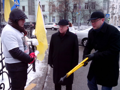 Як зазначили Андрій Шевченко, активісти простояли понад двадцять одну годину прикутими до паркану. «За цей час жодної реакції з боку адміністрації президента не було на їхні вимоги. Ми вважаємо, що їхнє здоров’я набагато важливіше за бездушну, черству владу, яка навіть не спромоглася відреагувати», - сказав Андрій Шевченко, додавши, що вони разом з Борисом Тарасюком перерізали ланцюги, якими активісти були прикуті до паркану. Шевченко зазначив, що Олега Куявського та Івана Крулька забрали в тепло.