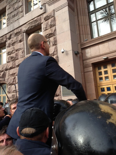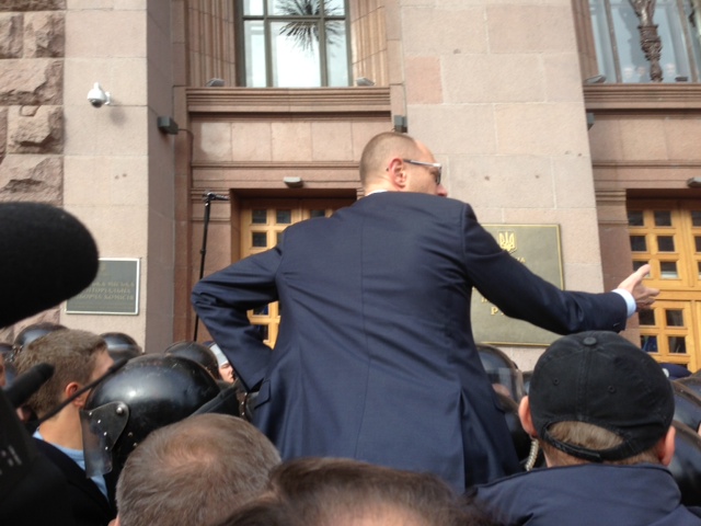 Перед цим Арсеній Яценюк повідомив журналістам, що він та депутати «Батьківщини» спробують пройти до приміщення Київради.