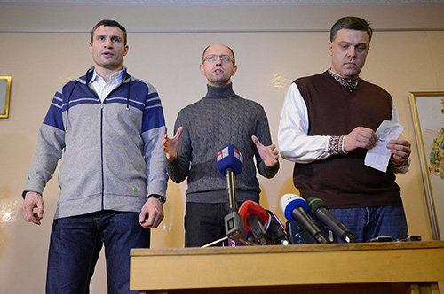 "Звертаємося до всієї України – прийдіть у Київ на Майдан. Тут зараз відбуваються основні події, основна боротьба. Лишайте все, приїжджайте сюди. Усе забезпечено для того, щоб українці вибороли своє право на справедливість", - сказав голова Політради ВО "Батьківщина" та фракції "Батьківщина" Арсеній Яценюк на прес-конференції в Штабі національного спротиву в Будинку профспілок. Арсеній Яценюк нагадав, що вчора опозиція презентувала план, "що треба робити": "Можемо сьогодні відзвітувати, що зроблено: українці вийшли на мирний протест, українці скористалися своїм конституційним правом і повернулися в серце України – на Майдан". Він також наголосив, що на Майдані було організовано наметове містечко, встановлено сцену: "Штаб національного спротиву забезпечує все – починаючи від медичної допомоги і закінчуючи харчуванням".