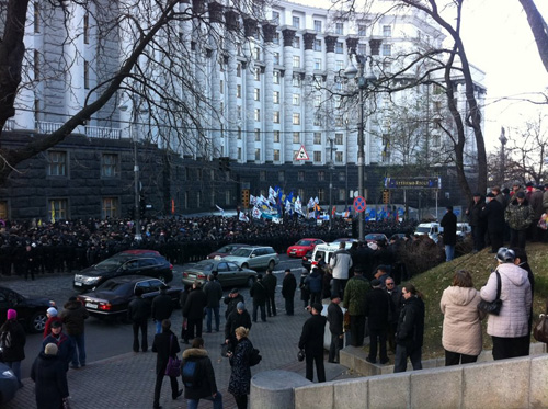 Декілька тисяч прихильників партії «Батьківщина» підтримують акцію протесту біля Кабінету міністрів. Також біля будинку уряду присутні народні депутати фракції «БЮТ-Батьківщина», зокрема, Сергій Пашинський, Андрій Павловський, Юрій Одарченко. Одарченко повідомив, що активісти «Батьківщини» вирішили приєднатися до акції, оскільки економічна політика уряду є провальною, внаслідок чого люди змушені виходити на масові акції протесту. «Поки що немає вуличних боїв, але ситуація близька до цього», - сказав він. За словами народного депутата, «вже всім стало зрозуміло, що уряд Януковича-Азарова не знає як вийти з ситуації, яка склалася внаслідок свого правління».