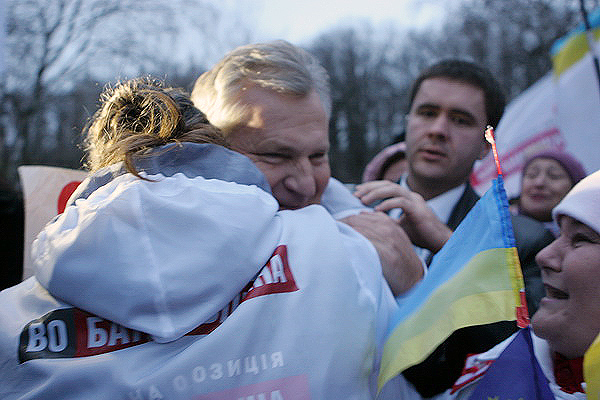 Коли кортеж залишав територію лікарні, автомобіль з європейськими спостерігачами зупинився, Пет Кокс і Олександр Кваснєвський вийшли поспілкуватися з прихильниками Юлії Тимошенко. Кваснєвський підбадьорив присутніх, зазначивши, що до саміту у Вільнюсі ще є кілька днів і що надія вмирає останньою.