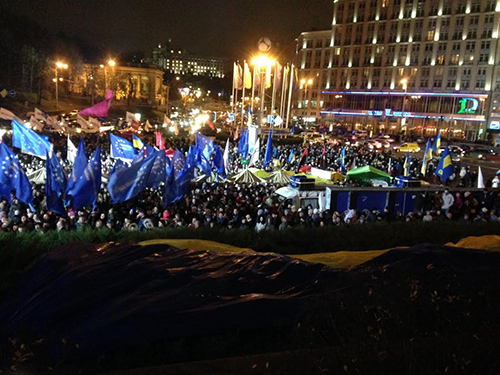 На Євромайдані уже зібралися кілька тисяч людей. Очікуються виступи лідерів опозиційних політичних сил, громадських діячів. Також відбудеться концерт за участі груп «Мотор’ролла», «Гайдамаки», «PanKe Shava».