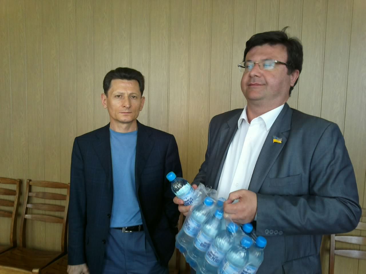 Народний депутат Андрій Павловський передає воду для голодуючого колеги Михайла Волинця