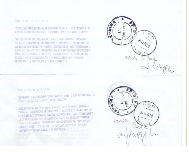 Опозиція повідомила владу про безстрокову зустріч із виборцями народних депутатів на Майдані Незалежності, на Європейській площі, біля Верховної Ради, в Будинку профспілок та КМДА. Наводимо відповідні документи: