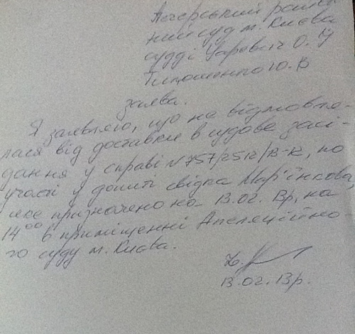 Пенітенціарна служба знову розповсюджує неправду щодо Юлії Тимошенко. Про це йдеться у заяві прес-служби партії "Батьківщина". "Пенітенціарна служба свідомо вводить суспільство в оману та розповсюджує неправду про те, що Юлія Тимошенко начебто відмовилася від участі у судовому засіданні з допиту нібито свідка у справі Щербаня, яке має відбувається у рамках досудового слідства", - наголошується у заяві. Наводимо документ, написаний лідером опозиції власноруч. У ньому зазначається, що Юлія Тимошенко не відмовлялася від участі у судовому засіданні. Цей документ є підтвердженням того, що тюремники, за наказом Банкової, продовжують фальсифікувати інформацію щодо Юлії Тимошенко та розповсюджують відверту брехню.