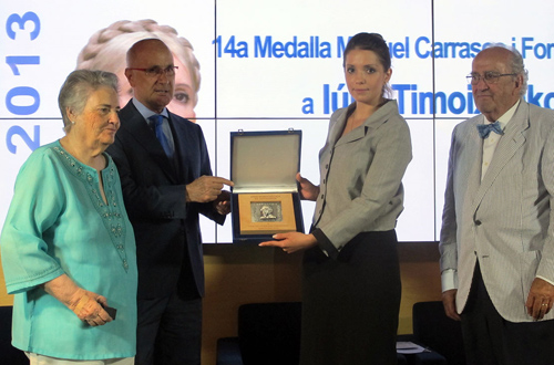 За словами президента іспанської партії Unio Democratica de Catalunya Жозефа Антоні Дюрана Лейда, уся Європа визнала, що ув‘язнення лідера української опозиції Юлії Тимошенко є політично-вмотивованим. Про це йшлося у його промові під час нагородження Юлії Тимошенко медаллю Мануеля Карраско Формігуера (Manuel Carrasсo Formiguera) за внесок у захист демократії, свободи та боротьбу за відновлення верховенства права в Україні. «Уся Європа визнала, що без усіляких сумнівів арешт та ув‘язнення Юлії Тимошенко є політично-вмотивованим, а судовий процес проти неї не відповідав демократичним принципам», - заявив він, передаючи медаль доньці лідера опозиції Євгенії. «Це не просто помста, це стратегія з метою перешкодити Юлії Тимошенко та її партії отримати найкращий результат на парламентських виборах 2012 року та, звичайно, намагання не дати їй приймати участь у президентських виборах у 2015 році», - сказав Жозеф Антоні Дюрана Лейда. За його словами, у 2004 році весь світ захоплювався Юлією Тимошенко, «коли вона стала героїнею Помаранчевої революції та відновила справедливість». «Зараз вона знову продовжує боротьбу за свободу та демократію. Якщо дев‘ять років тому їй вдалося досягти перемоги, то зараз через свою боротьбу вона страждає від помсти тих, хто тоді програв», - підкреслив Жозеф Антоні Дюрана Лейда. Він підкреслив, що, нагороджуючи Юлію Тимошенко медаллю Мануеля Карраско Формігуера, Іспанія відзначає її боротьбу за демократичні цінності. «Цією медаллю ми оцінюємо боротьбу за свободу і гуманізм. Ми робили це, нагороджуючи колишнього Президент Чехії Вацлава Гавела та Президента Європейського Парламенту Ганс-Герта Пьоттерінга», - зазначив президент Unio Democratica de Catalunya. «У випадку Юлії Тимошенко ми хотіли відзначити її зусилля по захисту демократії та свобод. Я сподіваюся, що її боротьба буде успішною. Медаль - це спосіб повідомити Юлії Тимошенко та світові про нашу підтримку у її боротьбі», - підкреслив він. У церемонії нагородження медаллю Мануеля Карраско Формігуера, яка є найвищою відзнакою Unio Democratica de Catalunya за захист демократичних цінностей, у Барселоні взяли участь донька Юлії Тимошенко Євгенія та заступник голови партії «Батьківщина», Голова Комітету Верховної Ради з питань європейської інтеграції Григорій Немиря. В основі партії "Уніо Демократіка де Каталунія", яку було утворено у 1931 році, лежить ідеологія гуманізму та християнської демократії. Видатного члена партії, борця за свободу і демократію Мануеля Карраско Формігуера було страчено за наказом диктатора Франко в результаті сфабрикованого процесу. Цей рік в Іспанії проходить під знаком Мануеля Карраско Формігуера, оскілько "Unio Democratica de Catalunya" 75-ті роковини з дня його загибелі.
