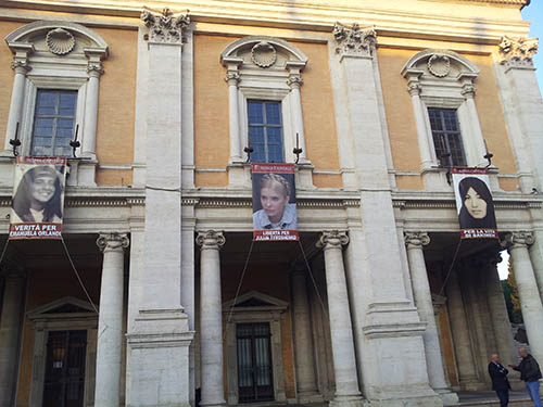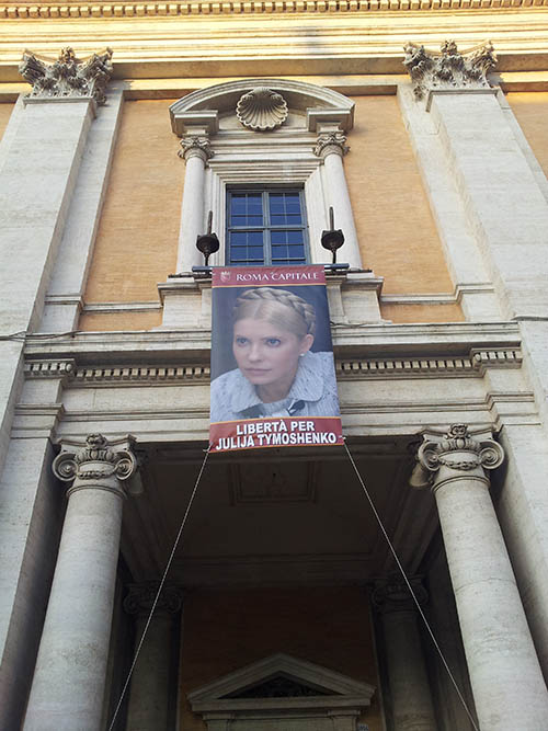 Сьогодні в Римі на фасаді однієї з будівель Капітолійського пагорбу було вивішено портрет Юлії Тимошенко з написом «Свободу для Юлії Тимошенко» на знак солідарності та підтримки лідера опозиції України. Відповідне рішення одноголосно прийняла мерія міста Рим, зважаючи на політичну ситуацію та нещодавні парламентські вибори в Україні. Під час заходу мер Риму Джанні Аліманно заявив про солідарність з Юлією Тимошенко та підкреслив, що «буде звертатися до мерів столиць країн Європейського Союзу з пропозицією підтримати цю ініціативу Риму».
