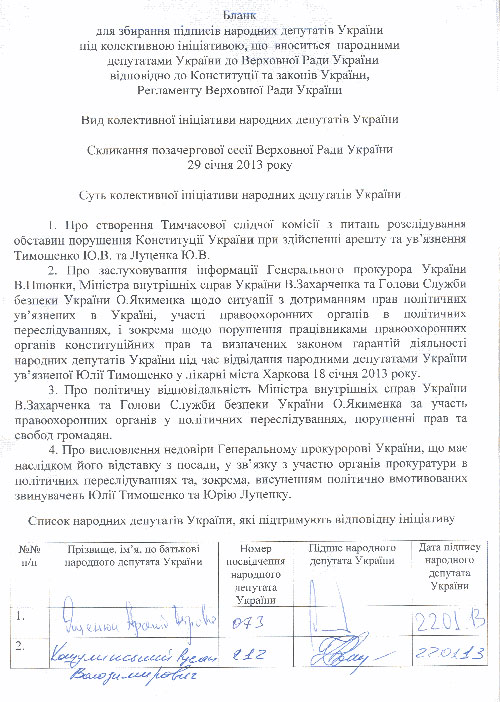 Під вимогою про скликання позачергової сесії поставили свої підписи голови фракцій «Батьківщина» Арсеній Яценюк, «УДАР» Віталій Кличко, «Свобода» Олег Тягнибок, депутати трьох опозиційних фракцій та окремі позафракційні депутати.