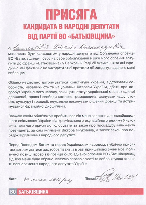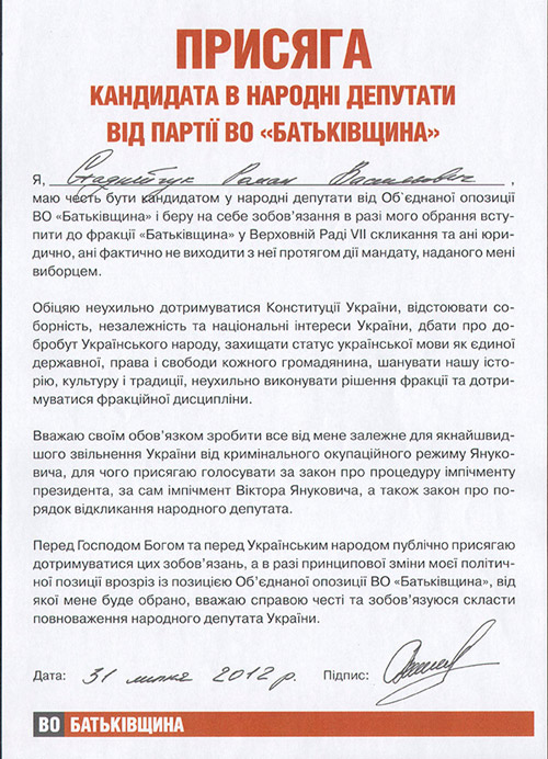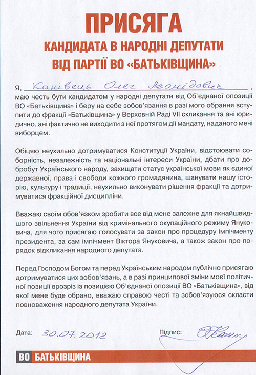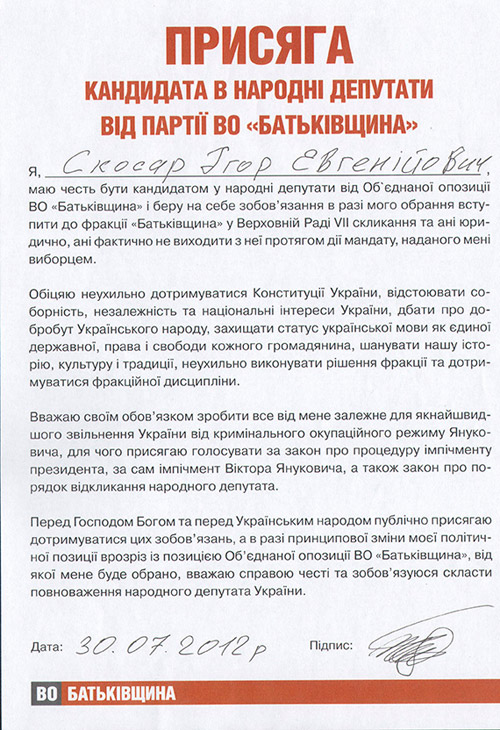 Учора чотири народних депутати України – Віталій Немілостівий, Роман Стаднійчук, Ігор Скосар та Олег Канівець – написали заяви про свій вихід із фракції «Батьківщина». Ці народні обранці зрадили своїх виборців та порушили присягу, яку вони публічно давали українському народу на Святому письмі. На жаль, ці особи не встояли перед багатомільйонними посулами та тиском регіональної прокуратури, виявили свою слабкість, безхребетність та абсолютну політичну безвідповідальність перед тими виборцями, які голосували насамперед не за них особисто, а за опозицію. Ми вимагаємо від цих зрадників негайно скласти свої депутатські мандати, а не займатися словоблудством та пошуком відмовок. Нагадаємо, що зробити це вони обіцяли, коли особисто підписували присягу кандидата в народні депутати України від «Батьківщини» перед початком парламентської виборчої кампанії. Перед Господом Богом і перед народом України вони клялися ні юридично, ні фактично не виходити із фракції «Батьківщина», а в разі принципової зміни власної політичної позиції зобов’язувалися добровільно скласти повноваження народного депутата України. Повідомляємо також, що Об’єднана опозиція «Батьківщина» внесла на розгляд Верховної Ради законопроект про порядок відкликання народного депутата, який передбачає чітку процедуру позбавлення мандату подібних «тушок». Однак регіонали, чітко усвідомлюючи всі небезпечні для них наслідки, заблокували його розгляд. Ми переконані, що всю відповідальність за нових «тушок» несуть не лише депутати-зрадники, а й президент Віктор Янукович, за особистої команди якого відбувається систематичний тиск на народних депутатів від опозиції та їх безсоромний підкуп.