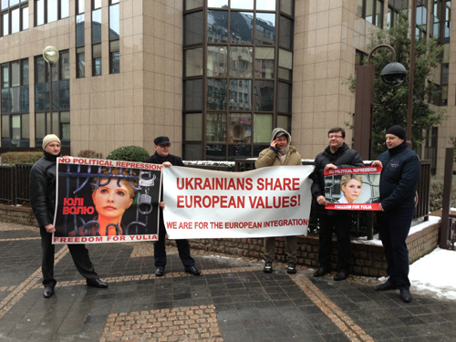 Біля будівлі Ради Європейського Союзу у Брюсселі, де проходить саміт Україна-ЄС, активісти «Батьківщини» розгорнули банери на підтримку лідера опозиції Юлії Тимошенко. Зранку біля центрального входу до будівлі опозиціонери розгорнули банери «No political repressions, Freedom for Yulia» (Ні політичним репресіям, свободу для Юлії) та «Ukrainians share european values: we are for the european integraty» (Українці розділяють європейські цінності: ми за європейську інтеграцію). Участь у акції взяли народні депутати від «Батьківщини» Андрій Павловський, Олександр Бригинець, заступник голови Київської «Батьківщини» Олександр Федоренко та голова районної Дніпровської організації партії «Батьківщина» Арман Гамзян.