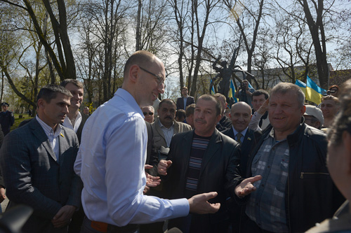 Люди тримають національні стяги, прапори опозиційних сил, портрети Юлії Тимошенко, плакати «За Україну, за її долю, за честь і волю, за народ!», «Україні волю! Юлі Волю!», «За справедливу зарплату!», «Роботу для кожного!», «За достойну пенсію!». По приїзду до Чернігова Арсеній Яценюк разом із народними депутатами від опозиції поклав квіти до пам'ятного знака Героям Чорнобиля на Алеї Героїв, а також поспілкувався з «чорнобильцями» й «афганцями», які в цей час перебували біля меморіалу.