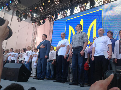 Близько 50 тисяч людей беруть участь в мітингу опозиції на Софійській площі в рамках всеукраїнської акції протесту «Вставай, Україно!». На сцені знаходяться лідери «Батьківщини», «Свободи» та «УДАРу» Олександр Турчинов, Арсеній Яценюк, Олег Тягнибок, Віталій Кличко, а також народні депутати.