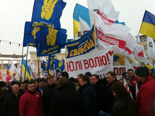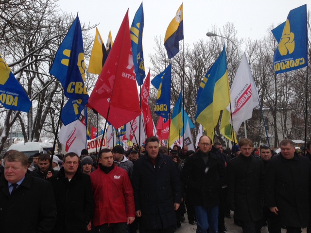 Незважаючи на надзвичайно складні погодні умови, більше трьох тисячі жителів Закарпаття вже долучилися до маршу в рамках загальнонаціональної акції протесту «Вставай, Україно!» в Ужгороді в п’ятницю, 15 березня. Марш очолили лідери опозиції: голова фракції «Батьківщина» Арсеній Яценюк та фракції ВО «Свобода» Олег Тягнибок. Акція почалася з незначним запізненням через негоду та дуже складну ситуацію на дорогах. Через погодні умови частині учасників не вдалося дістатися до місця проведення акції. Незважаючи на це, люди продовжують прибувати. По завершенню маршу відбудеться мітинг на Народній площі Ужгорода.