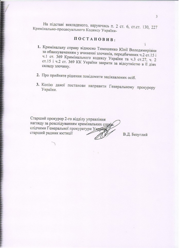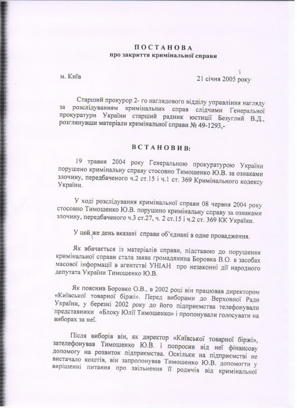 Заява народного депутата України,Голови Комітету Верховної Ради Україниз питань законодавчого забезпечення правоохоронної діяльностіШвеця Віктора Дмитровичадля засобів масової інформації Сьогодні, 12 травня 2010 року, Тимошенко Юлія Володимирівна була викликана до Генеральної прокуратури України для вручення постанови про порушення кримінальної справи по кримінальній справі №49-1293. В цей же день, старший слідчий в особливо важливих справах вручив Тимошенко Ю.В. дві постанови про порушення кримінальних справ: - постанова від 19 травня 2004 року - за ознаками злочину передбаченого ч.2 ст. 15 і ч.1 ст. 369 КК України – замах на давання хабара; - постанова від 8 червня 2004 року - за ознаками злочину, передбаченого ч. 8 ст. 27, ч.2 ст. 15 і ч.2 ст. 369 КК України - організація замаху на давання хабара, вчинене повторно. Цією ж постановою ця справа була об'єднана з кримінальною справою №49-1293. Разом з тим, необхідно зазначити, що вказана кримінальна справа була в провадженні Генеральної прокуратури України з 19 травня 2003 року до 21 січня 2005 року. Саме 21 січня 2005 року Генеральною прокуратурою України була винесена постанова про закриття кримінальної справи відносно Тимошенко Юлії Володимирівни за ч.2 ст.15 і ч.1 ст.369 КК України та ч.8 ст.27, ч.2 ст.15 і ч.2 ст.369 КК України - за відсутністю в її діях складу злочину. Важливо зазначити, що на момент закриття цієї кримінальної справи Тимошенко Ю.В. не обіймала посаду Прем'єр-міністра України та не перебувала на будь-якій іншійкерівній посаді в державі. Таким чином, старшим слідчим з особливо важливих справ Генеральної прокуратури України О.Пушкар 12 травня 2010 року були вручені Тимошенко Юлії Володимирівні дві постанови про порушення кримінальних справ від 19 травня 2004 року та від 8 червня 2004 року по кримінальній справі №49-1293, які в установленому Кримінально-процесуальним кодексом України порядку були закриті 21 січня 2005 року старшим прокурором Управління нагляду за розслідуванням кримінальних справ слідчими Генеральної прокуратури України, старшим радником юстиції В.Д.Безуглим. З таким рішенням старшого прокурора Безуглого В.Д. Генеральний прокурор України погодився. За таких обставин, старший слідчий Генеральної прокуратури України О.Пушкар не мав законних підстав вручати Тимошенко Юлії Володимирівні копії постанов про порушення кримінальних справ від 19 травня 2004 року та від 8 червня 2004 року, оскільки ці справи у встановленому законом порядку були закриті, що виключає подальше провадження по цих справах. Такі незаконні дії Генеральної прокуратури України свідчать про початок в Україні політичних репресій і що Генеральна прокуратура України використовується владою, як інструмент політичної розправи з опозицією і, зокрема, з керівником об'єднаної опозиції - Юлією Тимошенко. Вважаю, що є не припустимим використання правоохоронних органів та органів прокуратури в з'ясуванні стосунків між політичними силами в Україні, тим більше, як інструмент політичної розправи з політичним опонентами чинної влади. Політизація правоохоронної системи держави може призвести до істотного порушення прав і свобод громадян, які гарантовані Конституцією України.