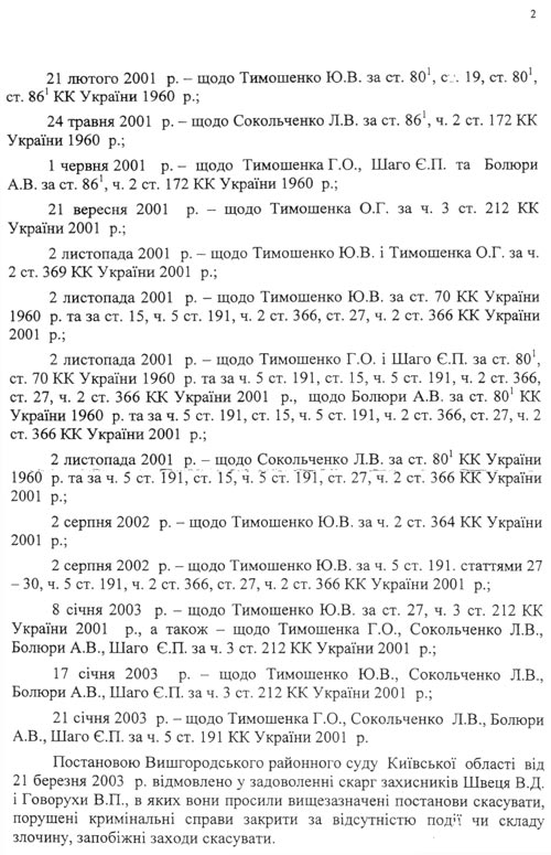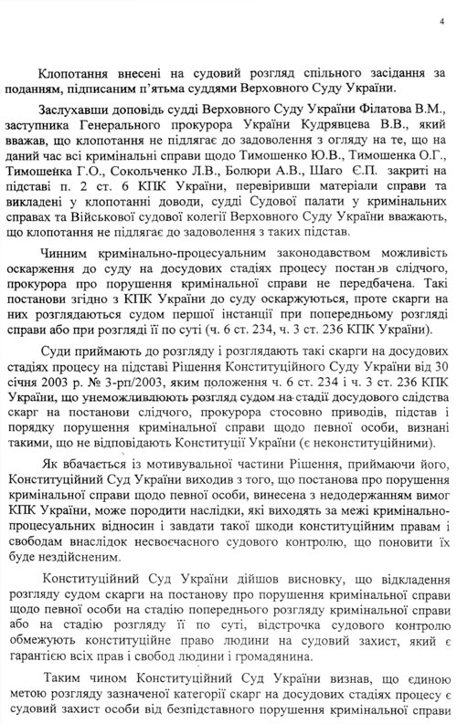 Обращаем внимание руководства Генпрокуратуры на то, что в постановлении Верховного Суда от 11 ноября 2005 года подтверждено законность закрытия всех уголовных дел, которые были возбуждены в отношении всех должностных лиц ЕЭСУ, за отсутствием состава преступления .