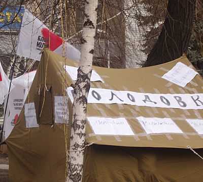 «Наша политическая сила обращается ко всем однопартийцам и жителям города Донецка с просьбой оказать посильную помощь чернобыльцам, объявившим сегодня голодовку. Так как они остаются на ночь под зданием Управления Пенсионного фонда и еще неизвестно, сколько будет продолжаться голодовка, им необходимы будут теплые вещи, матрацы, термосы для горячей воды», - сказал Мацука.