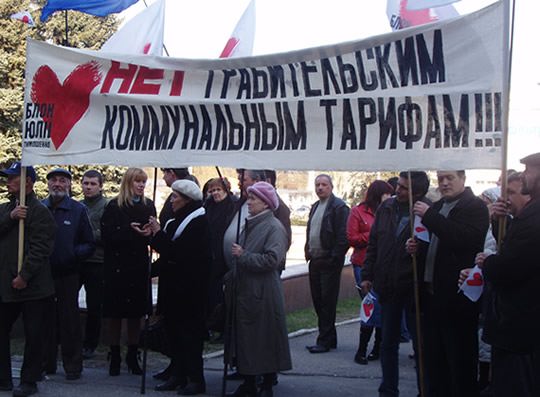 "Мы требуем от городского совета и от городского головы Донецка Александра Лукьянченко: снизить цены на теплоснабжение и установить стоимость отопления, существующую до 1 марта 2005 года; из перечня составляющих тарифов на услуги по содержанию домов и придомовых территорий исключить пункты: содержание аварийных служб, обслуживание диспетчерской службы, уборку лестничных площадок и обслуживание электроплит, что позволит значительно уменьшить существующие тарифы на жилищно-коммунальные услуги в городе Донецке", - говорится в листовке, которую распространяют активисты блока.
