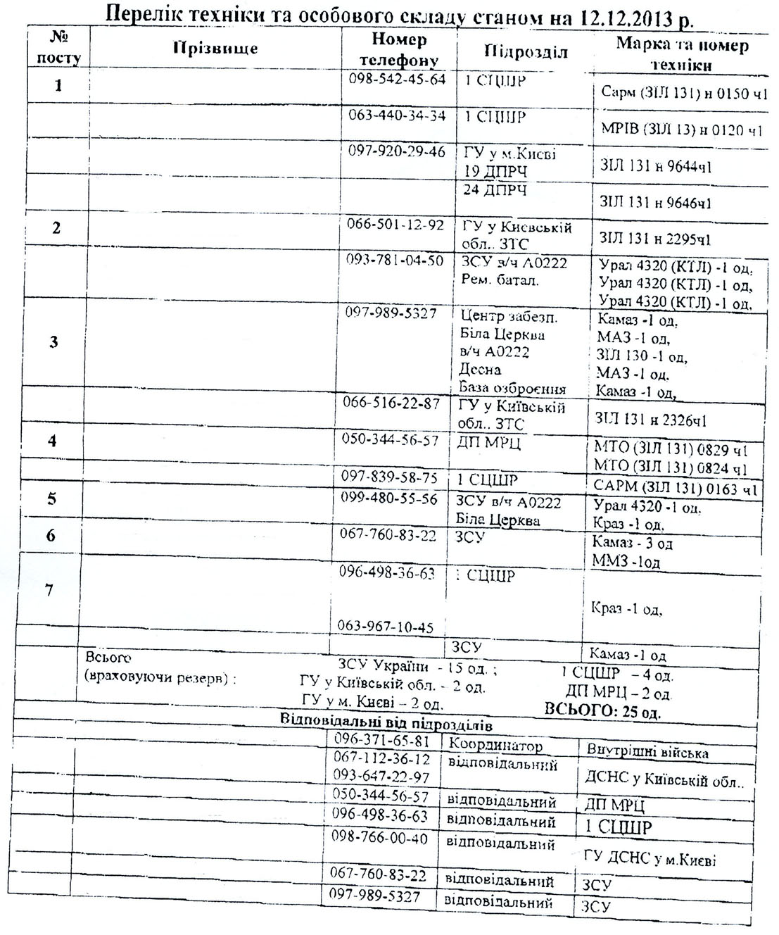 Він надає схеми розміщення техніки і номери телефонів особового складу.