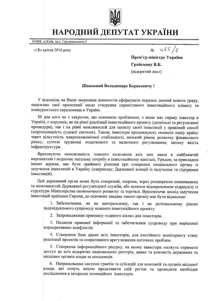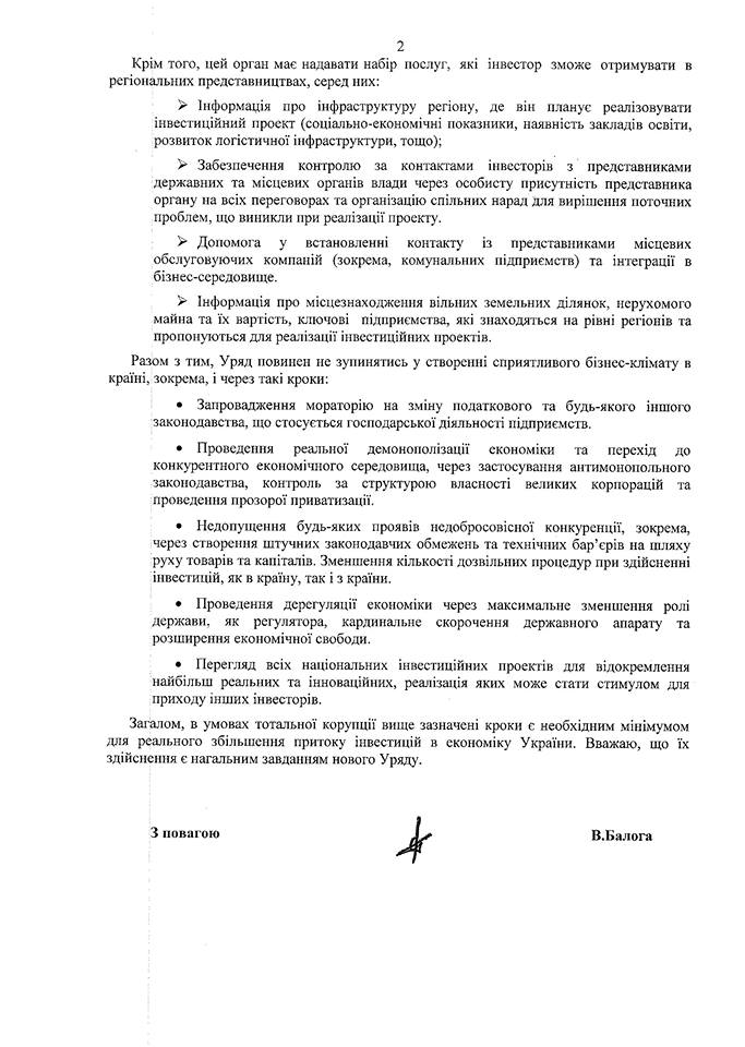 Віктор Балога направив Главі уряду листа з пропозиціями щодо покращення інвестиційного клімату