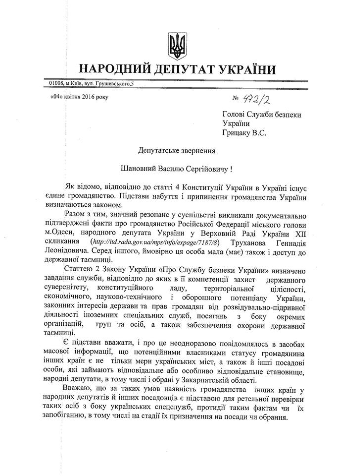 Віктор Балога звернувся в СБУ щодо перевірки справи подвійного громадянства мера Одеси