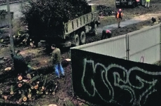 На улице Попудренко, 7а—9а, (сразу возле выхода из м. «Дарница») строители вырубили небольшой сквер. Местные жители в недоумении: «Еще 19 марта вечером все деревья росли, а 20 числа — одни пеньки», — говорит Игорь.