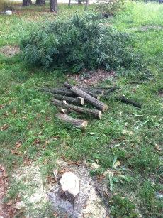 Сотрудники коммунального предприятия «Домашний магазин» пытались вырезать многолетние деревья на территории сквера по адресу ул. Котельникова, 32 (Святошинский район) с целью установления павильона «социального магазина». Однако, местные жители вместе с депутатом Киевсовета Д. Москалем вызвали милицию.
