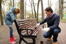Участники мероприятия убрали территорию сквера от прошлогодней листвы и мусора, покрасили лавочки.