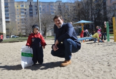 После завершения уборки все детки, которые пришли на толоку вместе с родителями, получили игрушки от Дениса Москаля.