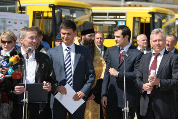За участю столичного мера Леоніда Черновецького на Софійській площі відбулись презентація і освячення нових комунальних автобусів вітчизняного виробництва, а також проводи в депо найстарішого «Ікаруса». Про це повідомляє прес-служба КМДА.