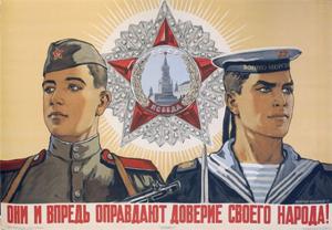 Я клянусь добросовестно изучать военное дело, всемерно беречь военное и народное имущество и до последнего дыхания быть преданным своему Народу, своей Советской Родине и Советскому Правительству.