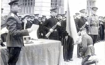 После присяги Временному правительству Командующий Петроградским военным округом ген. Л. Г. Корнилов принимает парад. Петроград. Весна 1917 г. http://dic.academic.ru/dic.nsf/ruwiki/84919