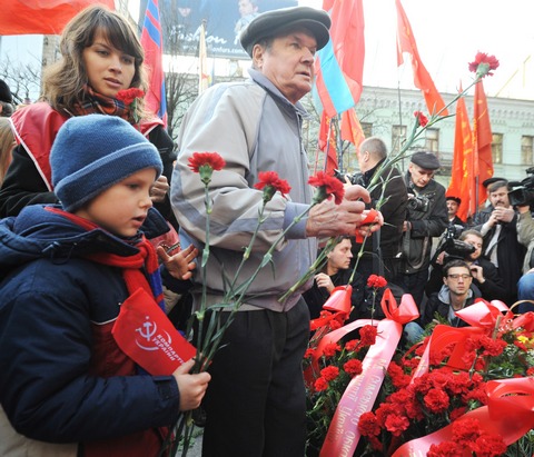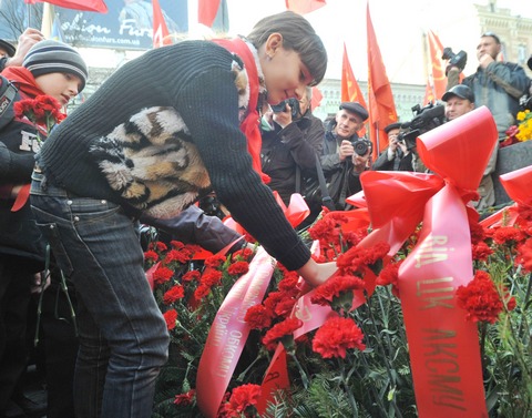 В 11:00 состоялось возложение цветов к памятнику В.И. Ленину. В церемонии приняли участие лидер Компартии Украины П.Н. Симоненко, второй секретарь ЦК КПУ И.В. Алексеев, первый заместитель председателя Верховной Рады Украины А.И. Мартынюк, секретарь ЦК КПУ Г.В. Буйко, первые секретари Киевских городского и областного комитетов КПУ А.Л. Комнацкий и А.А. Медведев, члены ЦК КПУ, народные депутаты Украины, ветераны Великой Отечественной войны и труда, молодёжь, представители трудовых коллективов столицы.