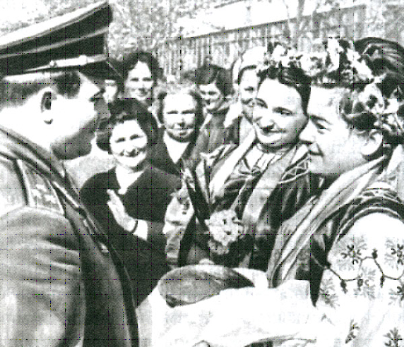– В апреле 1966 года, по приглашению украинского ленинского комсомола, в Киев прибыл первый летчик-космонавт, герой Советского Союза, Юрий Алексеевич Гагарин. Прибыл, чтобы принять участие в работе XX съезда ЛКСМУ. Вместе с ним приехали композитор Александра Пахмутова и Николай Добронравов, авторы широко известной песни «Знаете, каким он парнем был…». Гости знакомились с городом и его достопримечательностями, гуляли по Крещатику, посетили центральный Дворец пионеров, Киевский авиазавод Антонова. Нашли время встретиться и с трудовым коллективом нашей фабрики. Мы, трикотажницы, радушно приняли у себя человека, видевшего Землю со стороны звезд. Тем более что к тому времени одна из наших лучших бригад носила его имя. Вспоминают, что, взглянув на взволнованные лица работниц, их пылающие щеки и глаза, светящиеся от радости, Гагарин воскликнул: (см. "Гагарин в Киеве" - )